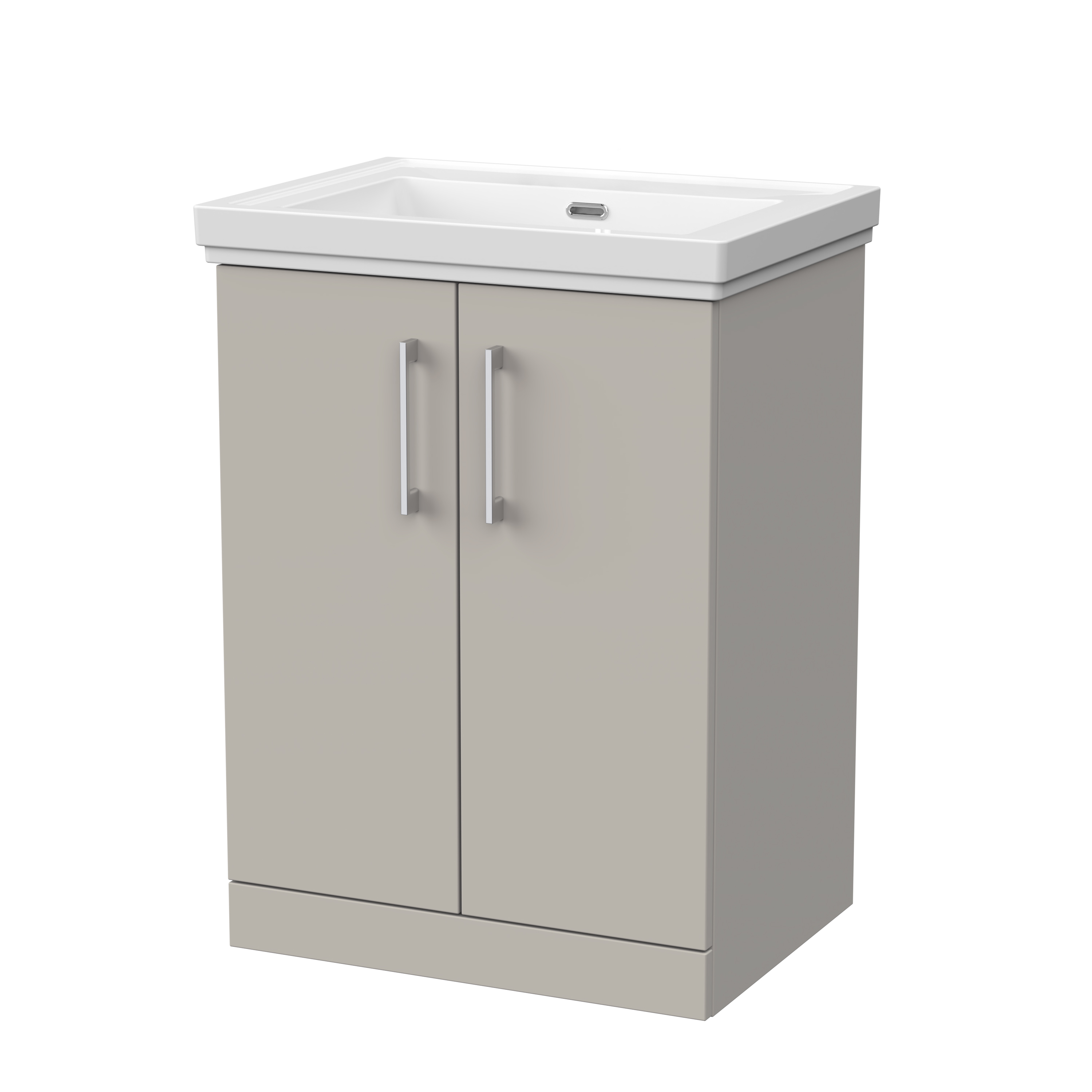 nuie Lux Kivo 600mm 2-Door Floor Standing Unit with a Traditional Fireclay Basin - 0 Tap Holes - Pebble Grey