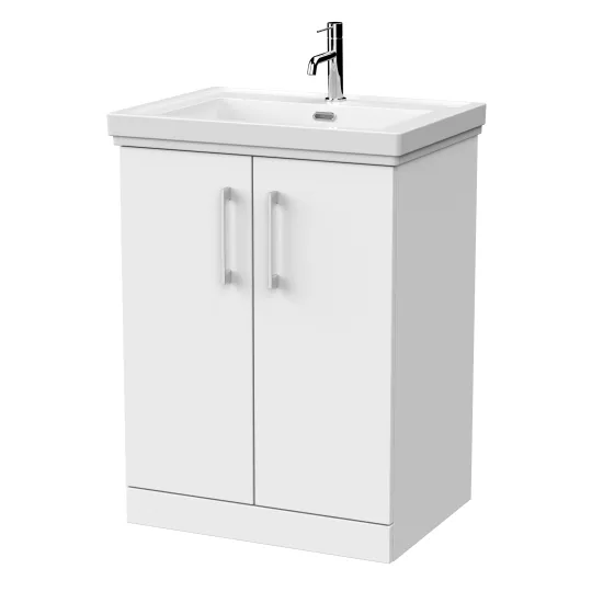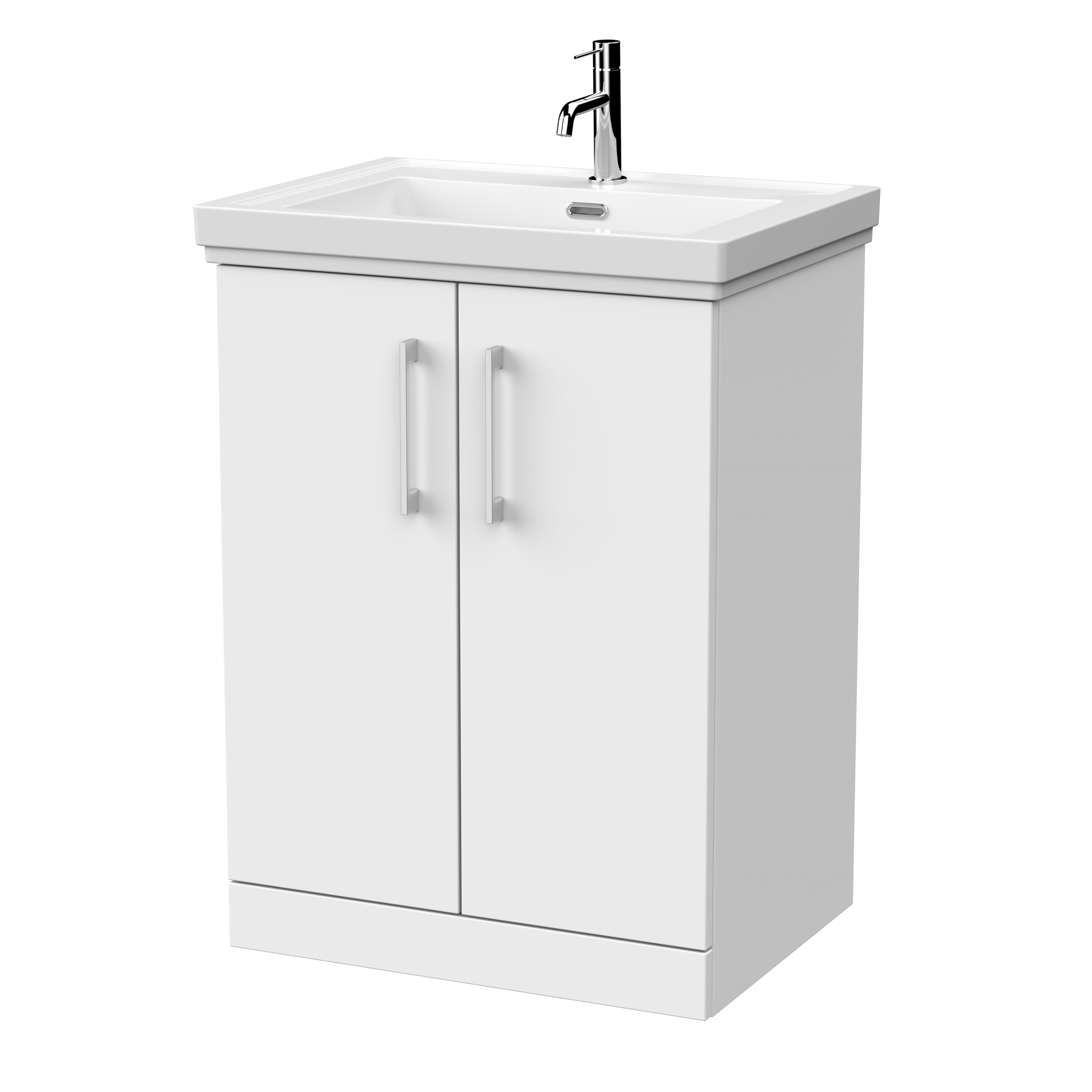 nuie Lux Kivo 600mm 2-Door Floor Standing Unit with a Traditional Fireclay Basin - 1 Tap Hole - Matt White