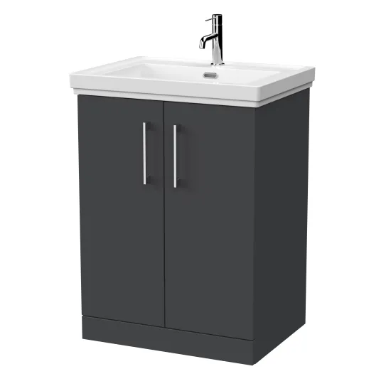 nuie Lux Kivo 600mm 2-Door Floor Standing Unit with a Traditional Fireclay Basin - 1 Tap Hole - Soft Black