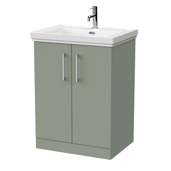 nuie Lux Kivo 600mm 2-Door Floor Standing Unit with a Traditional Fireclay Basin - 1 Tap Hole - Fern Green