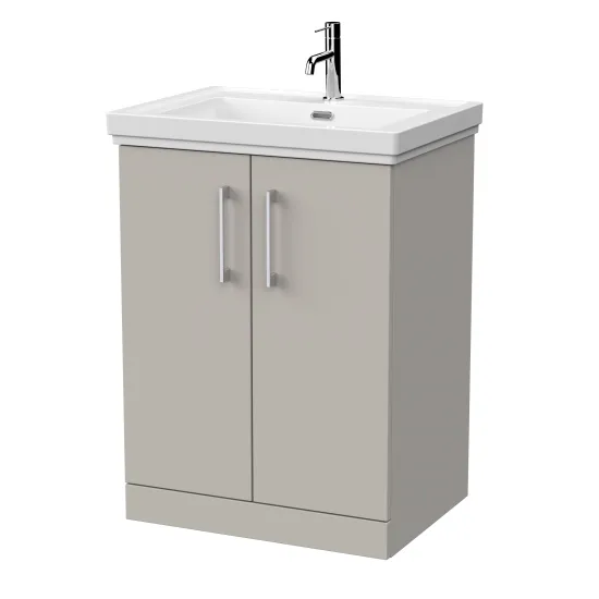 nuie Lux Kivo 600mm 2-Door Floor Standing Unit with a Traditional Fireclay Basin - 1 Tap Hole - Pebble Grey