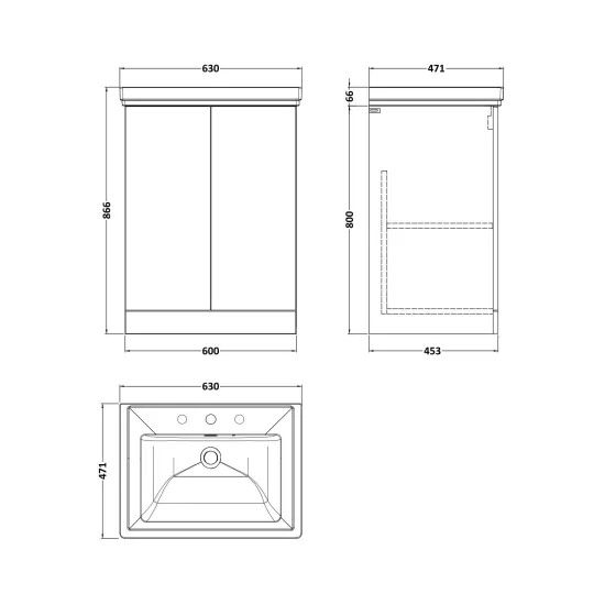 Kivo 600mm 2-Door Floor Standing Unit with a Traditional Fireclay Basin - 3 Tap Holes