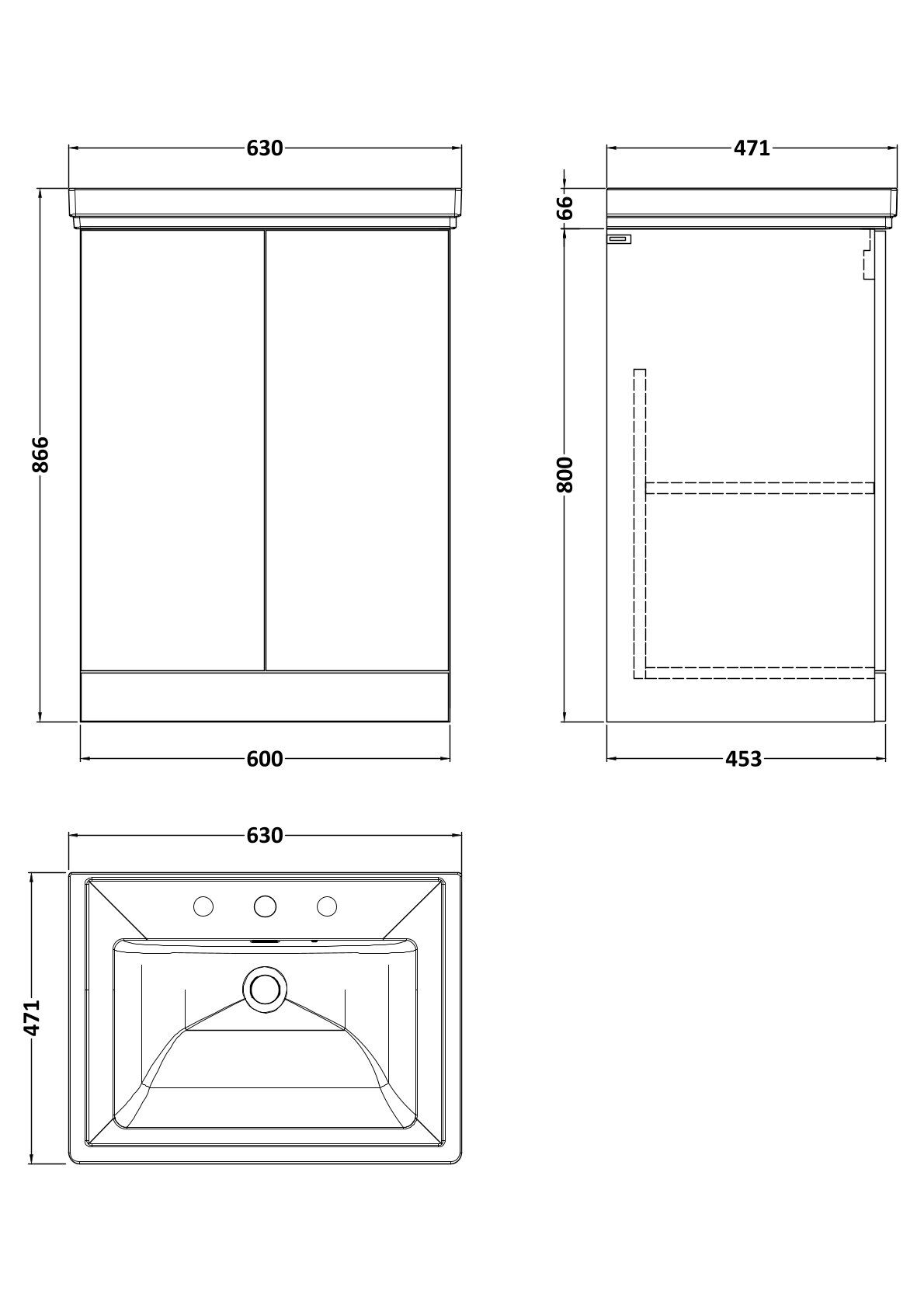 Kivo 600mm 2-Door Floor Standing Unit with a Traditional Fireclay Basin - 3 Tap Holes