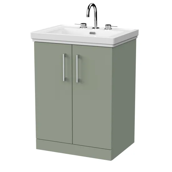 nuie Lux Kivo 600mm 2-Door Floor Standing Unit with a Traditional Fireclay Basin - 3 Tap Holes - Fern Green
