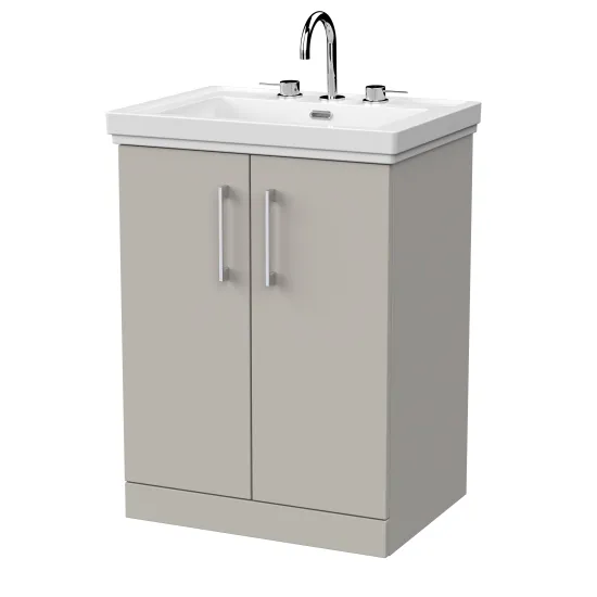 nuie Lux Kivo 600mm 2-Door Floor Standing Unit with a Traditional Fireclay Basin - 3 Tap Holes - Pebble Grey