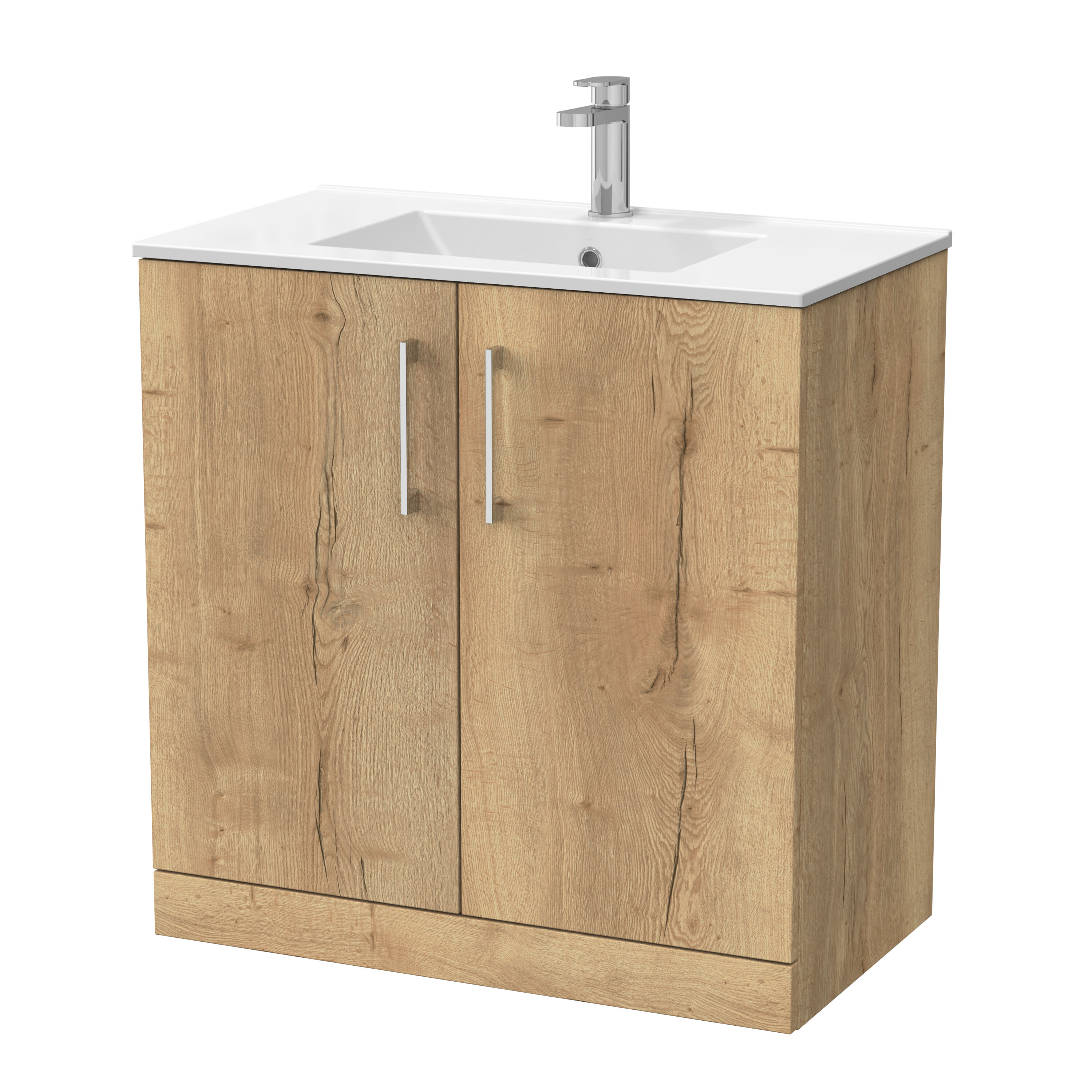 nuie Lux Kivo 800mm 2-Door Floor Standing Unit with a 1 Tap Hole Minimalist Basin Top - Autumn Oak
