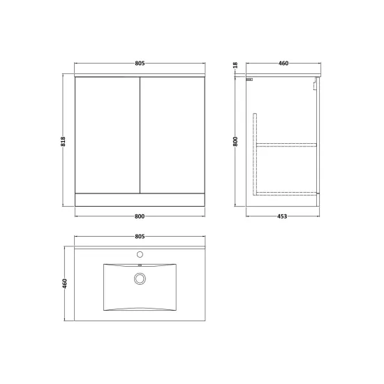 Kivo 800mm 2-Door Floor Standing Unit with a 1 Tap Hole Minimalist Basin Top
