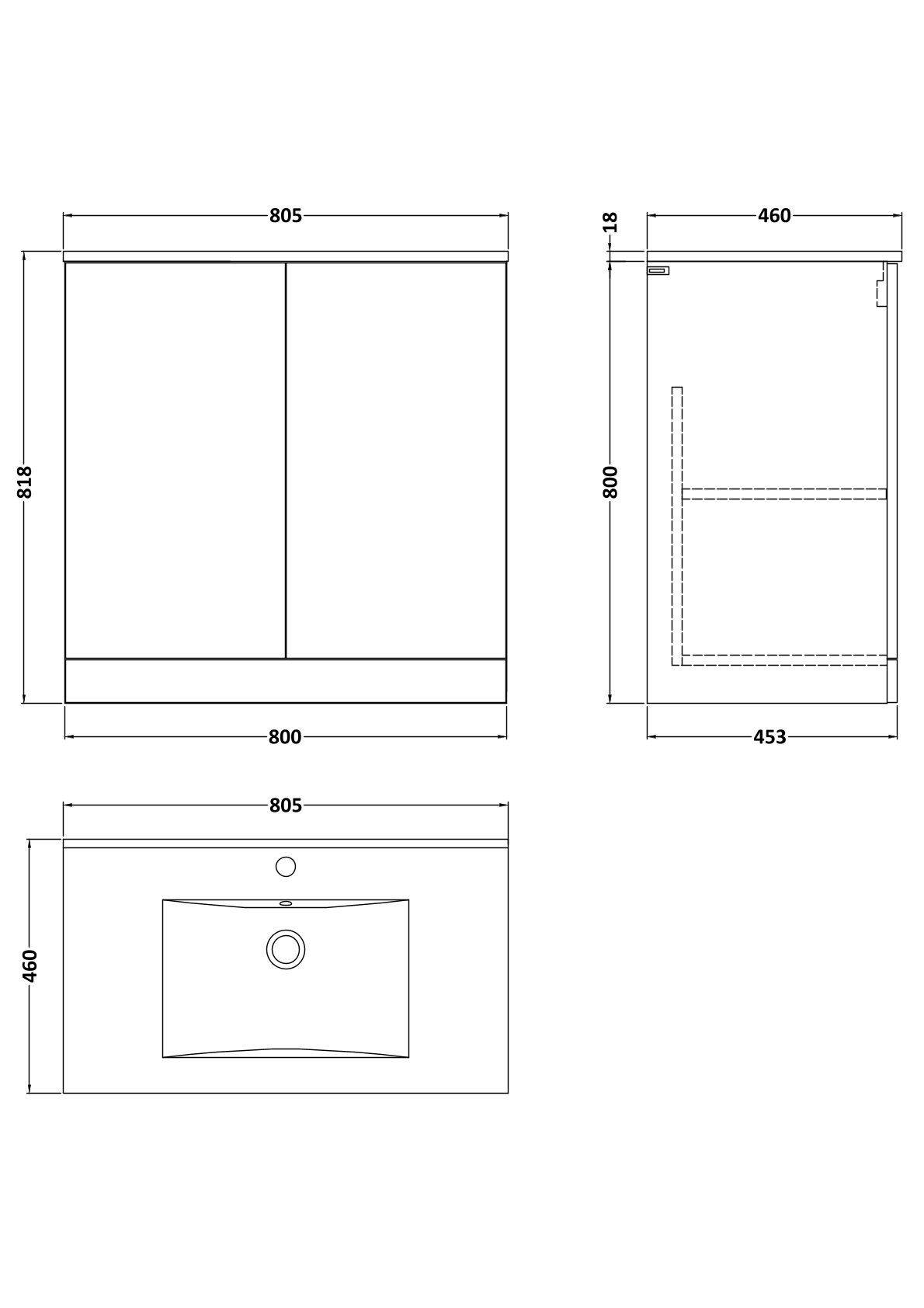 Kivo 800mm 2-Door Floor Standing Unit with a 1 Tap Hole Minimalist Basin Top