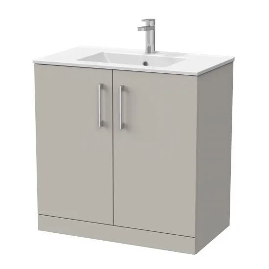 nuie Lux Kivo 800mm 2-Door Floor Standing Unit with a 1 Tap Hole Minimalist Basin Top - Pebble Grey