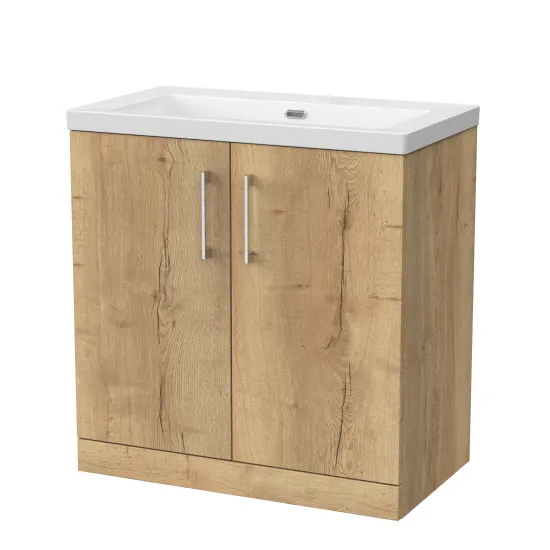 nuie Lux Kivo 800mm 2-Door Floor Standing Unit with a Contemporary Basin - 0 Tap Holes - Autumn Oak