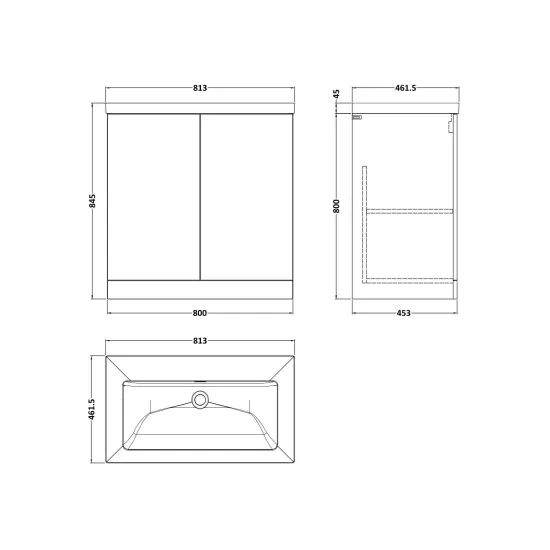 Kivo 800mm 2-Door Floor Standing Unit with a Contemporary Basin - 0 Tap Holes