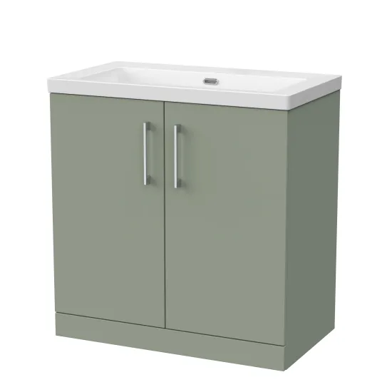 nuie Lux Kivo 800mm 2-Door Floor Standing Unit with a Contemporary Basin - 0 Tap Holes - Fern Green