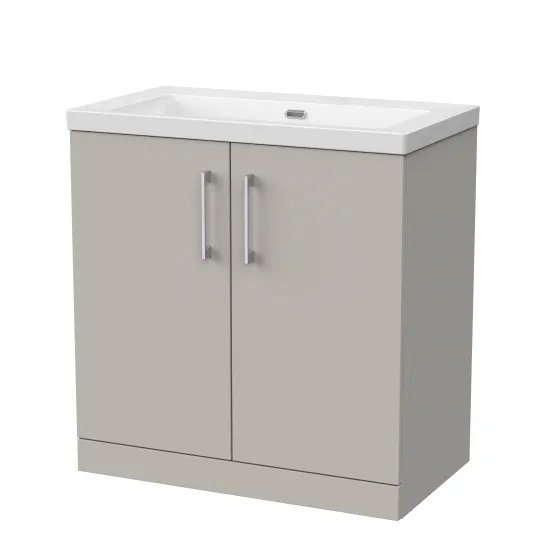 nuie Lux Kivo 800mm 2-Door Floor Standing Unit with a Contemporary Basin - 0 Tap Holes - Pebble Grey