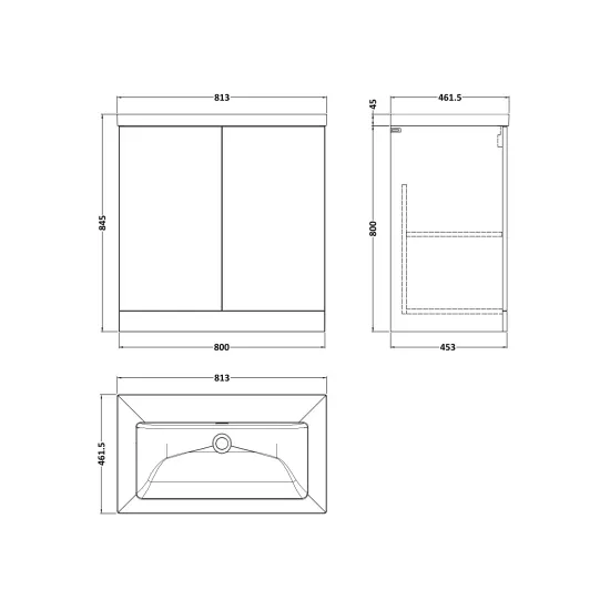 Kivo 800mm 2-Door Floor Standing Unit with a Contemporary Basin - 0 Tap Holes