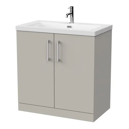 nuie Lux Kivo 800mm 2-Door Floor Standing Unit with a Contemporary Basin - 1 Tap Hole - Pebble Grey