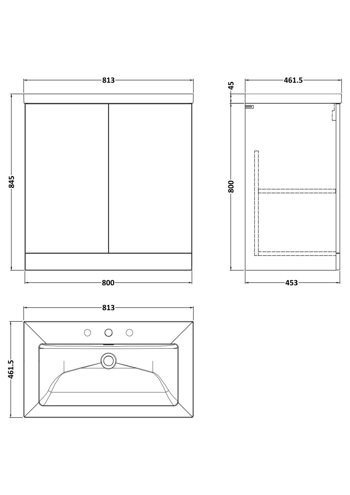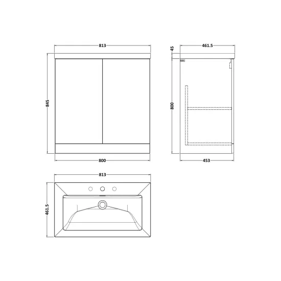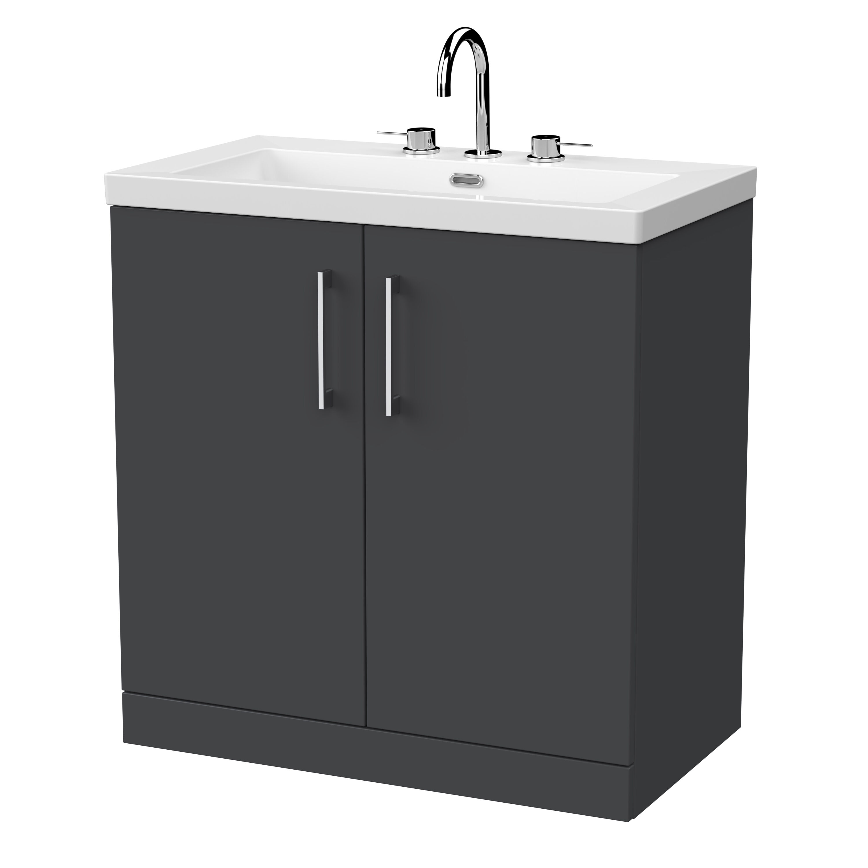 Kivo 800mm 2-Door Floor Standing Unit with a Contemporary Basin - 3 Tap Holes