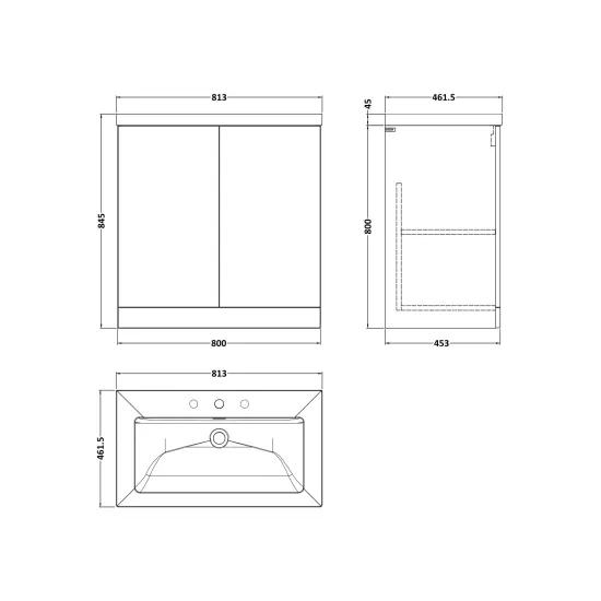 Kivo 800mm 2-Door Floor Standing Unit with a Contemporary Basin - 3 Tap Holes