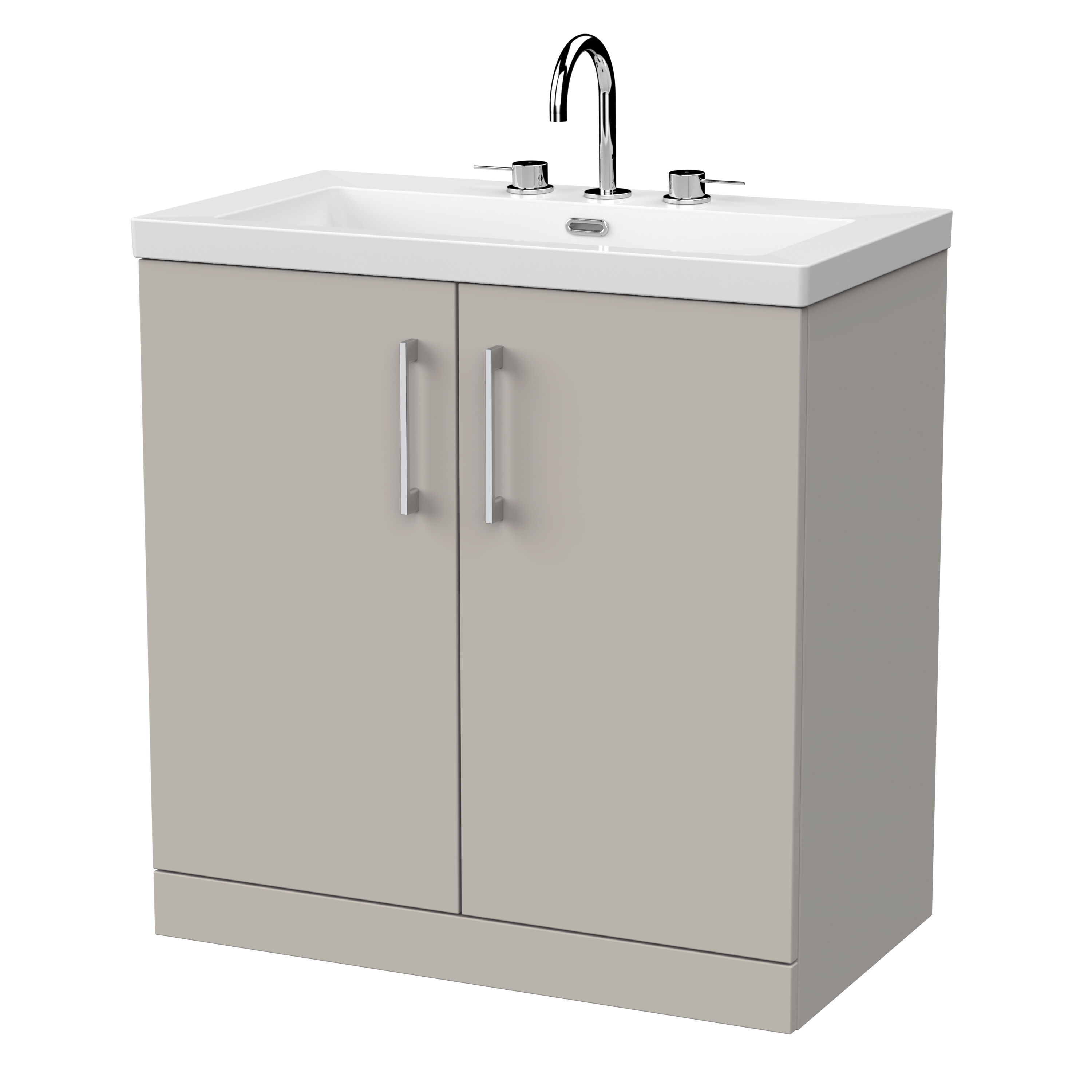 nuie Lux Kivo 800mm 2-Door Floor Standing Unit with a Contemporary Basin - 3 Tap Holes - Pebble Grey