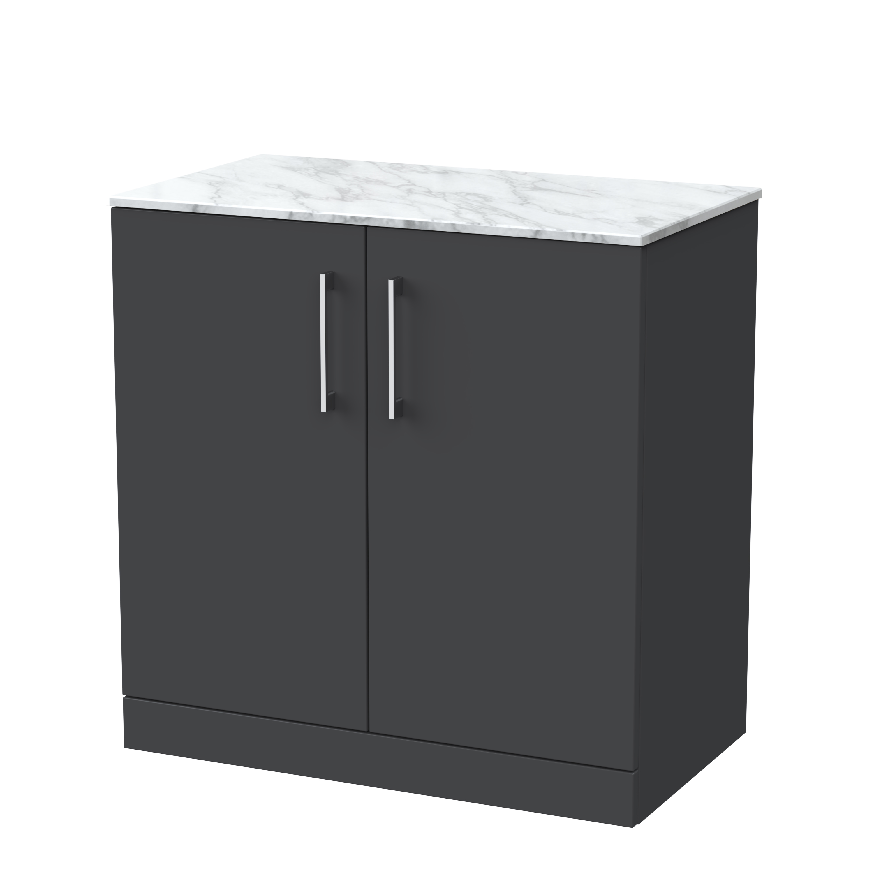 nuie Lux Kivo 800mm 2-Door Floor Standing Unit with a Marble Top in Carrera - Soft Black