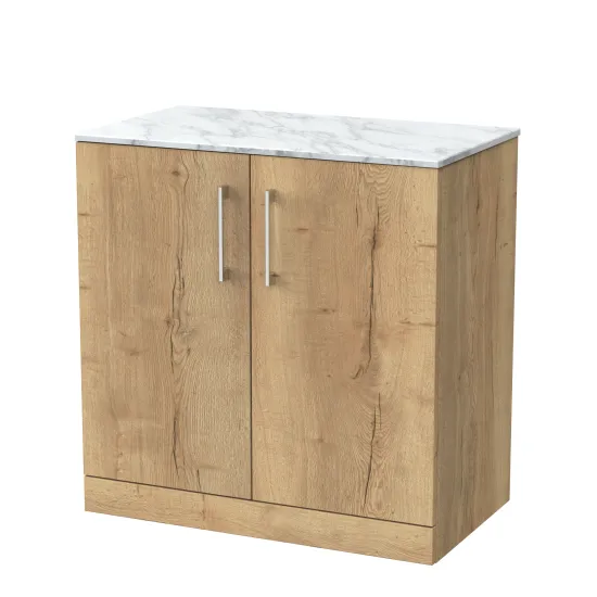 nuie Lux Kivo 800mm 2-Door Floor Standing Unit with a Marble Top in Carrera - Autumn Oak