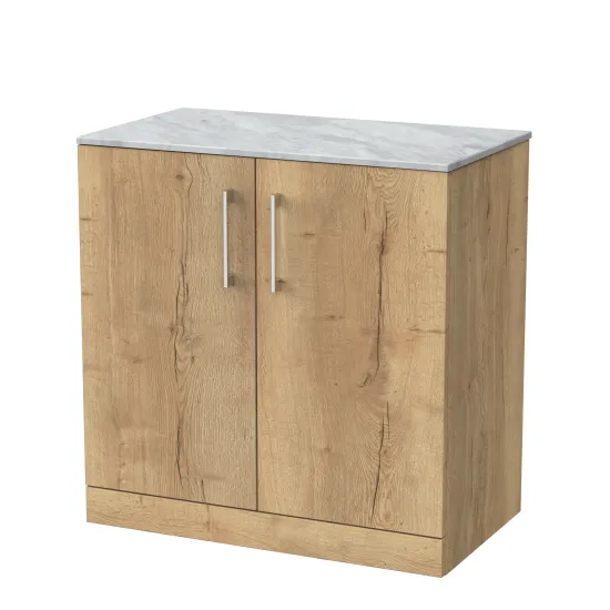 nuie Lux Kivo 800mm 2-Door Floor Standing Unit with a Marble Top in Grey - Autumn Oak