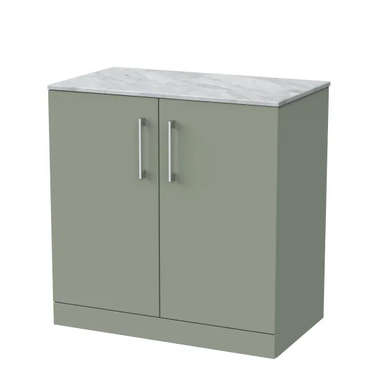 nuie Lux Kivo 800mm 2-Door Floor Standing Unit with a Marble Top in Grey - Fern Green