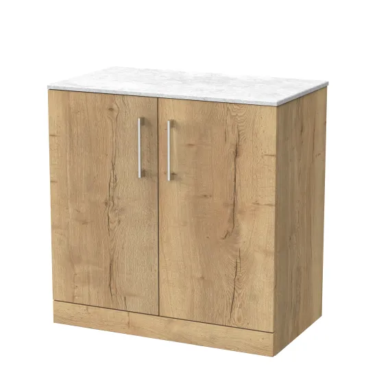 nuie Lux Kivo 800mm 2-Door Floor Standing Unit with a Marble Top in White - Autumn Oak