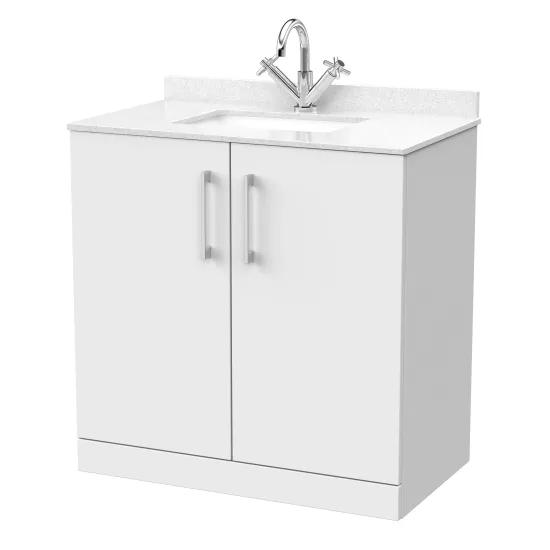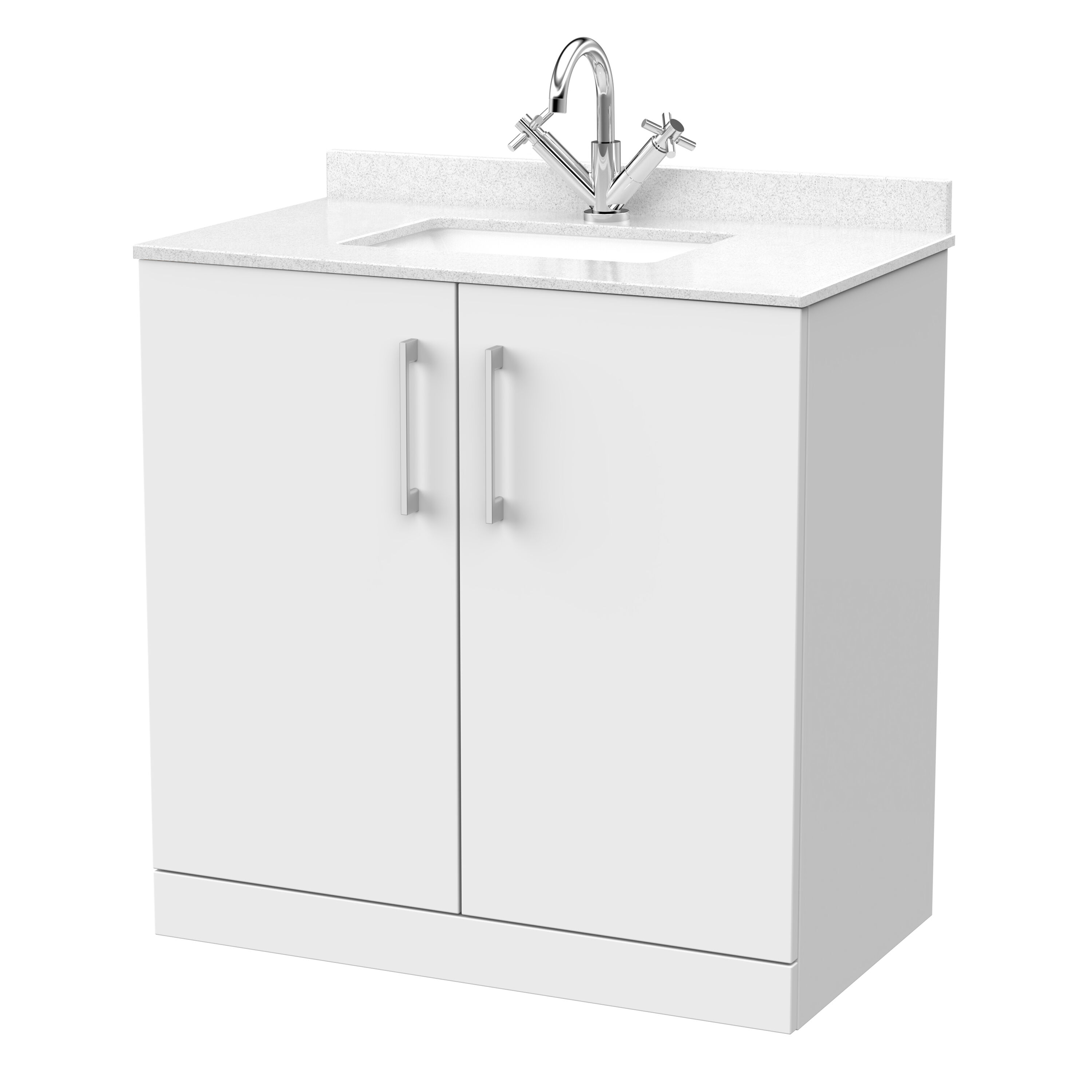 nuie Lux Kivo 800mm 2-Door Floor Standing Unit with a Single Bowl Marble Top 1 Tap Hole in White - Matt White