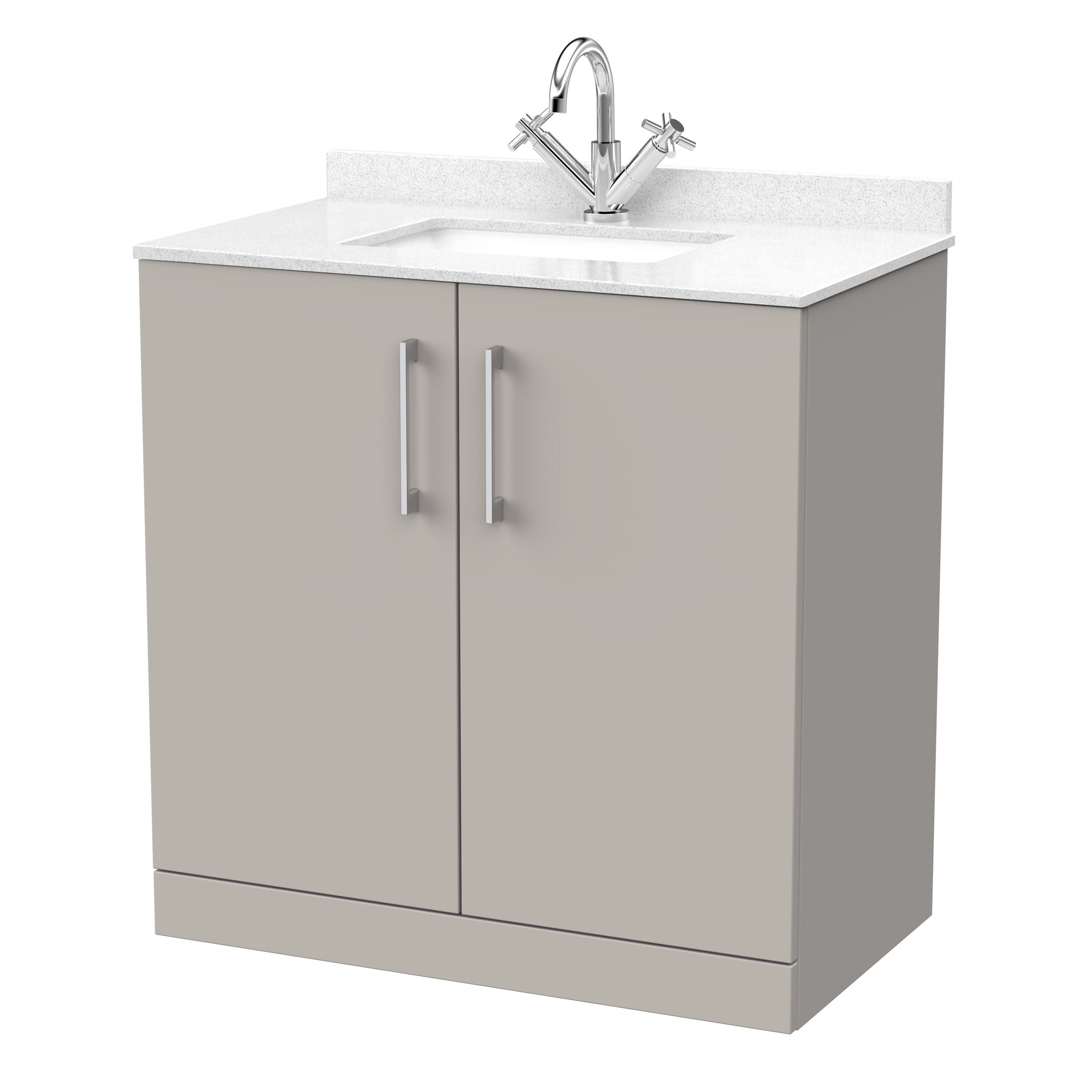 nuie Lux Kivo 800mm 2-Door Floor Standing Unit with a Single Bowl Marble Top 1 Tap Hole in White - Pebble Grey