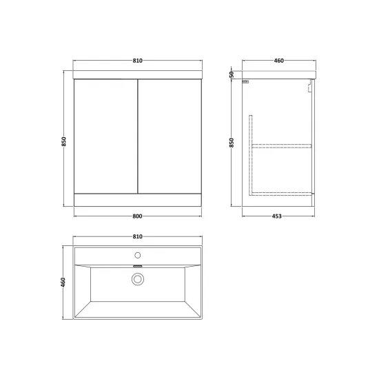 Kivo 800mm 2-Door Floor Standing Unit with a Thin-Edge Basin - 1 Tap Hole