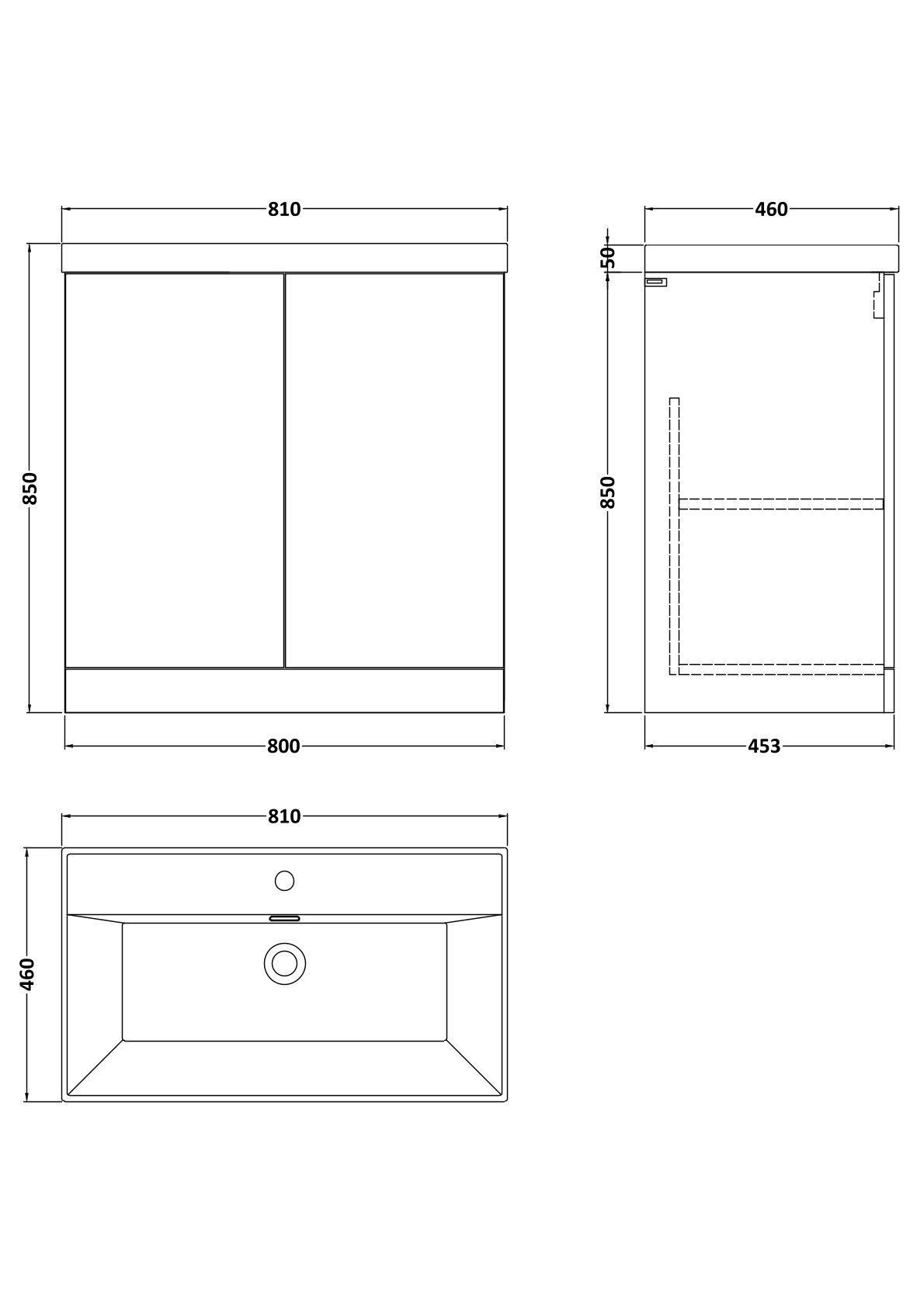 Kivo 800mm 2-Door Floor Standing Unit with a Thin-Edge Basin - 1 Tap Hole