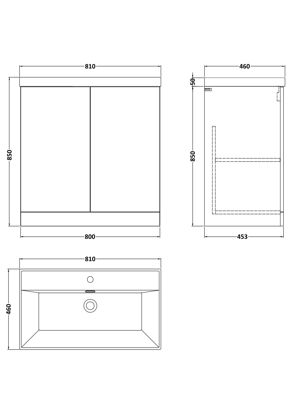 Kivo 800mm 2-Door Floor Standing Unit with a Thin-Edge Basin - 1 Tap Hole
