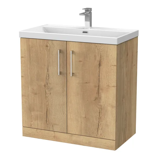 nuie Lux Kivo 800mm 2-Door Floor Standing Unit with a Thin-Edge Basin - 1 Tap Hole - Autumn Oak