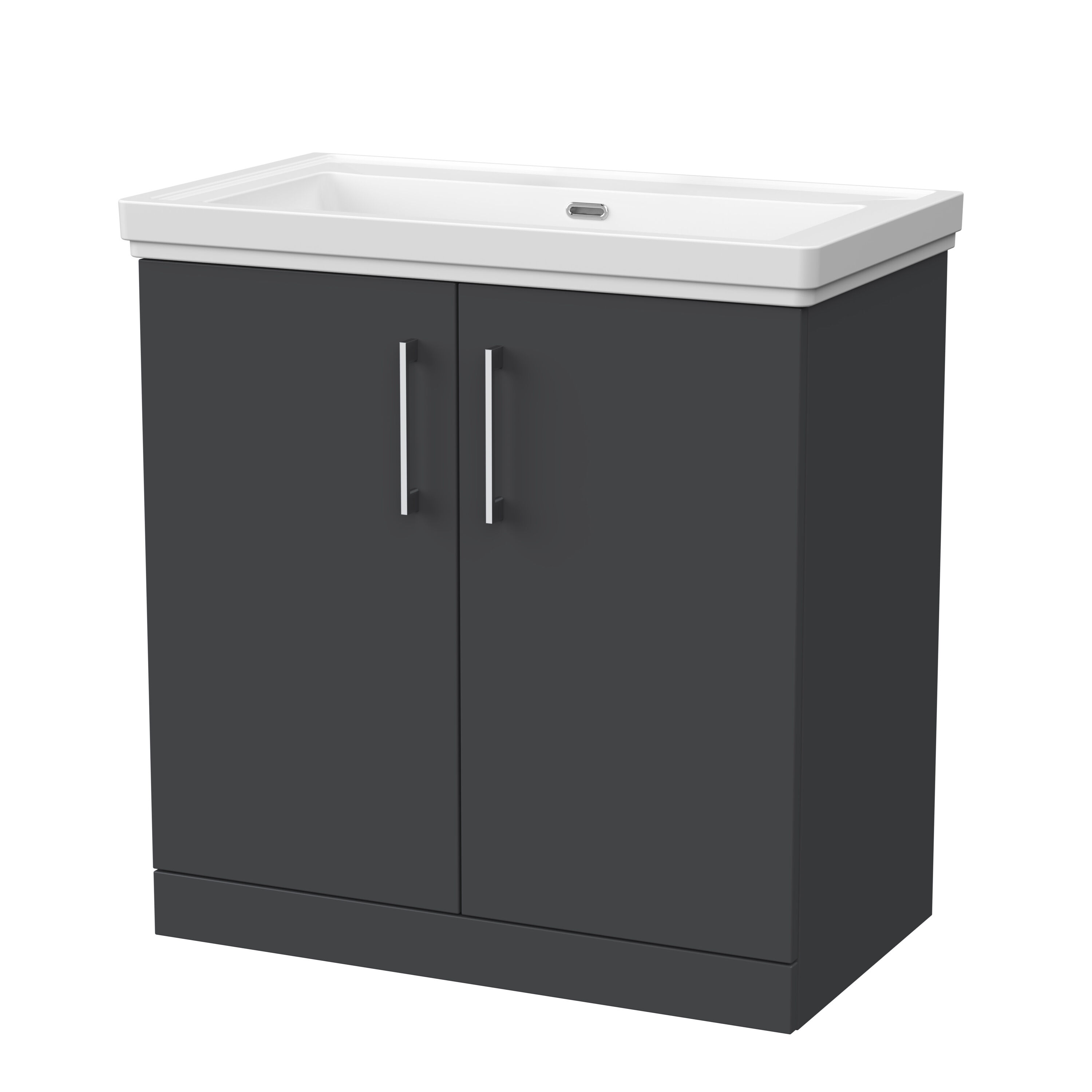 nuie Lux Kivo 800mm 2-Door Floor Standing Unit with a Traditional Fireclay Basin - 0 Tap Holes - Soft Black