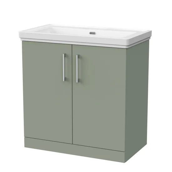 nuie Lux Kivo 800mm 2-Door Floor Standing Unit with a Traditional Fireclay Basin - 0 Tap Holes - Fern Green