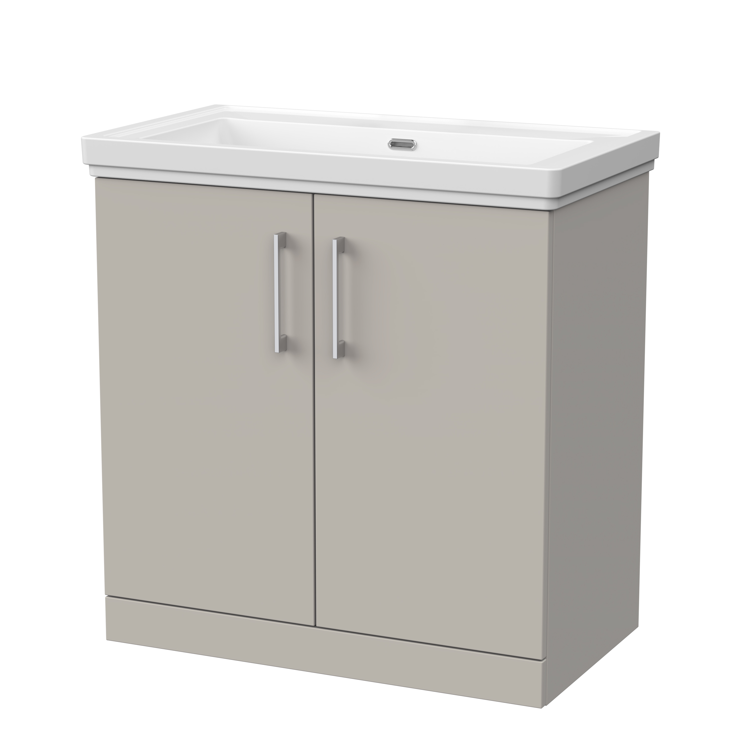 nuie Lux Kivo 800mm 2-Door Floor Standing Unit with a Traditional Fireclay Basin - 0 Tap Holes - Pebble Grey