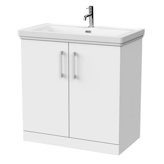 nuie Lux Kivo 800mm 2-Door Floor Standing Unit with a Traditional Fireclay Basin - 1 Tap Hole - Matt White