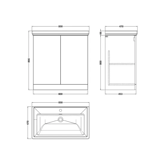 Kivo 800mm 2-Door Floor Standing Unit with a Traditional Fireclay Basin - 1 Tap Hole