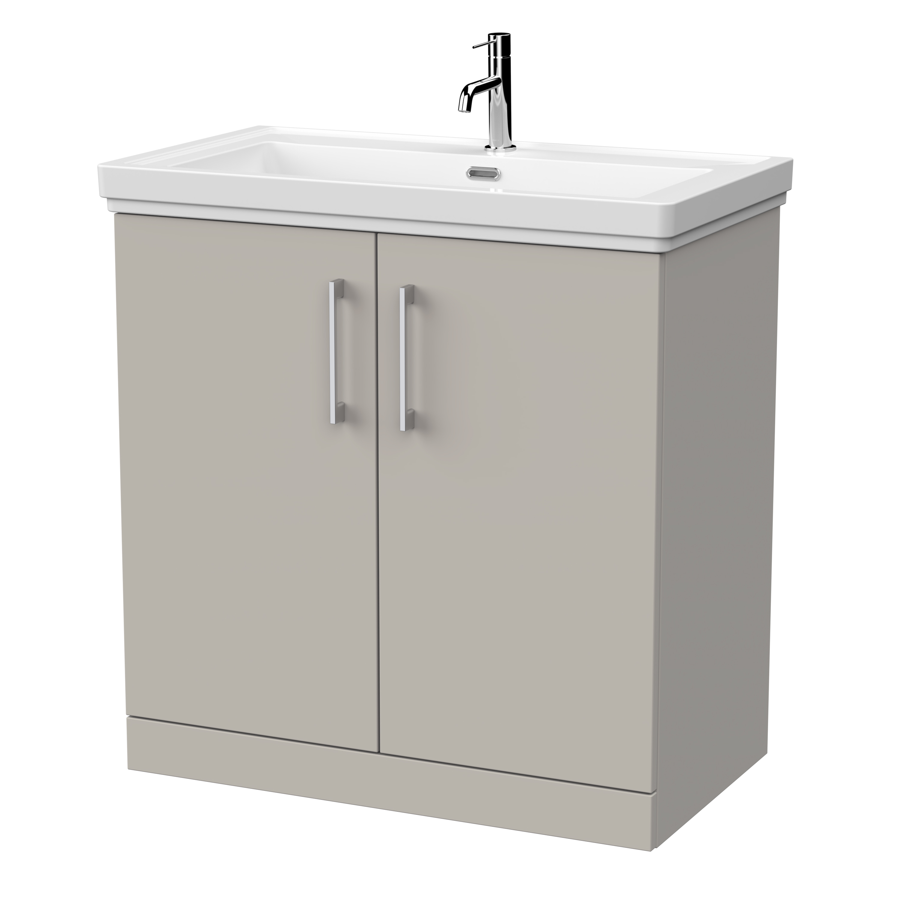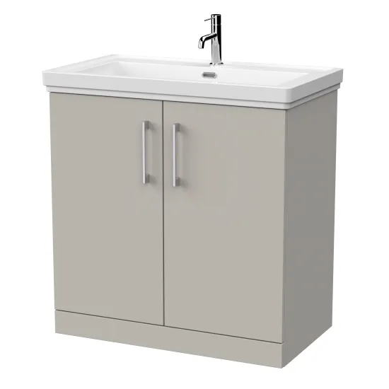 nuie Lux Kivo 800mm 2-Door Floor Standing Unit with a Traditional Fireclay Basin - 1 Tap Hole - Pebble Grey