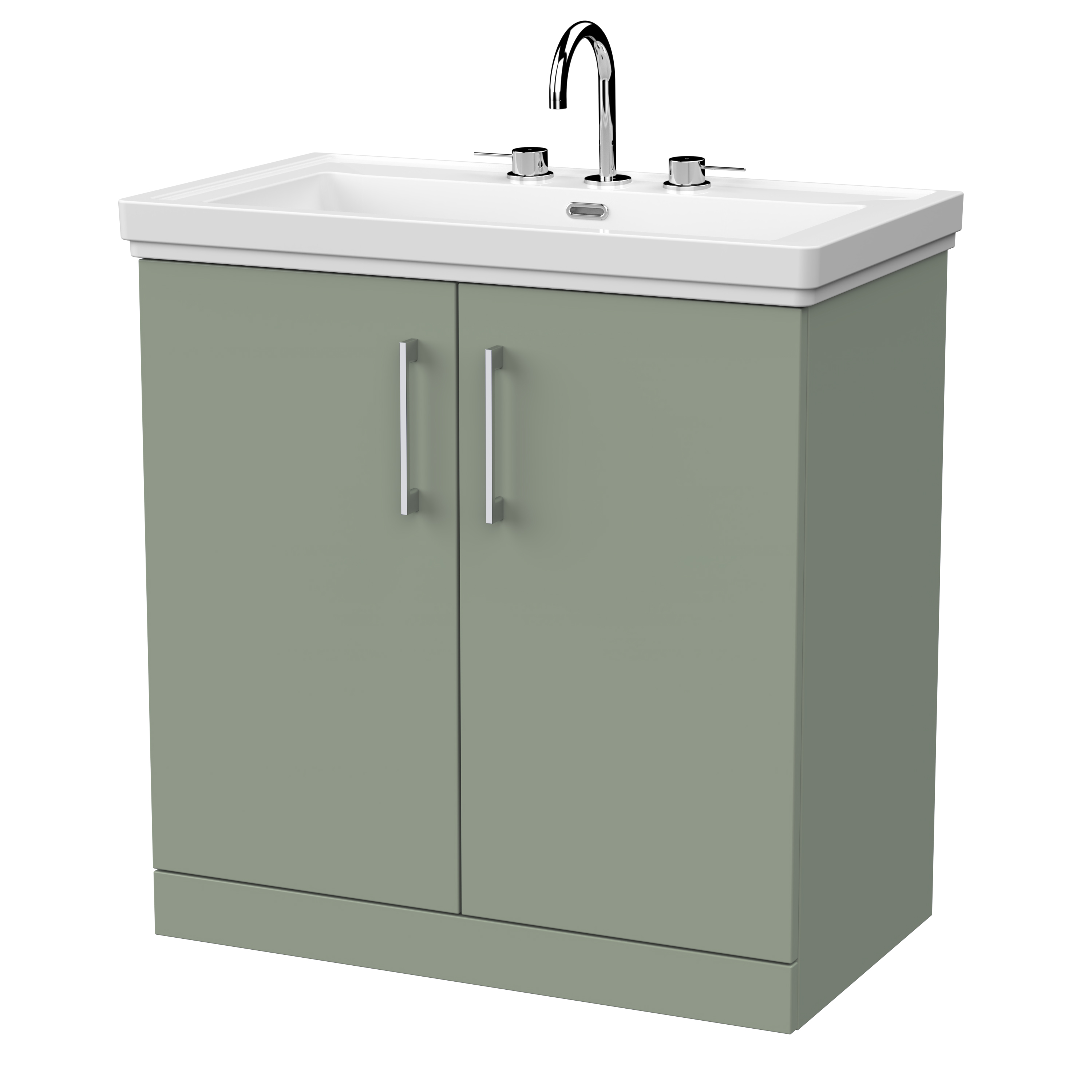 nuie Lux Kivo 800mm 2-Door Floor Standing Unit with a Traditional Fireclay Basin - 3 Tap Holes - Fern Green