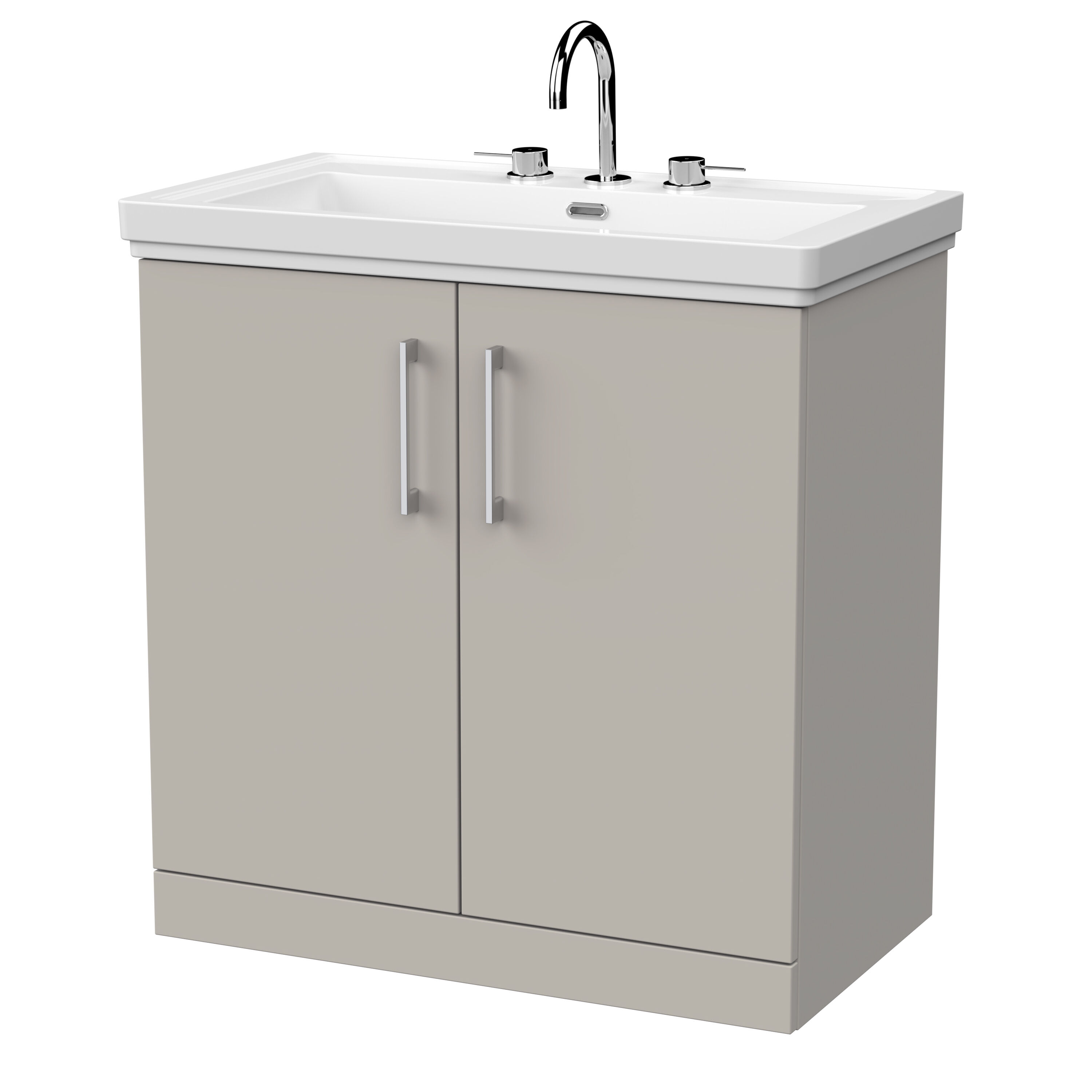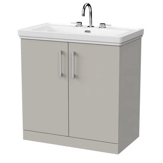 nuie Lux Kivo 800mm 2-Door Floor Standing Unit with a Traditional Fireclay Basin - 3 Tap Holes - Pebble Grey