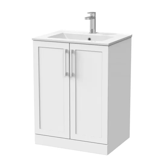 nuie Lux Larck 600mm 2-Door Floor Standing Unit with 1 Tap Hole Minimalist Basin Top - Matt White