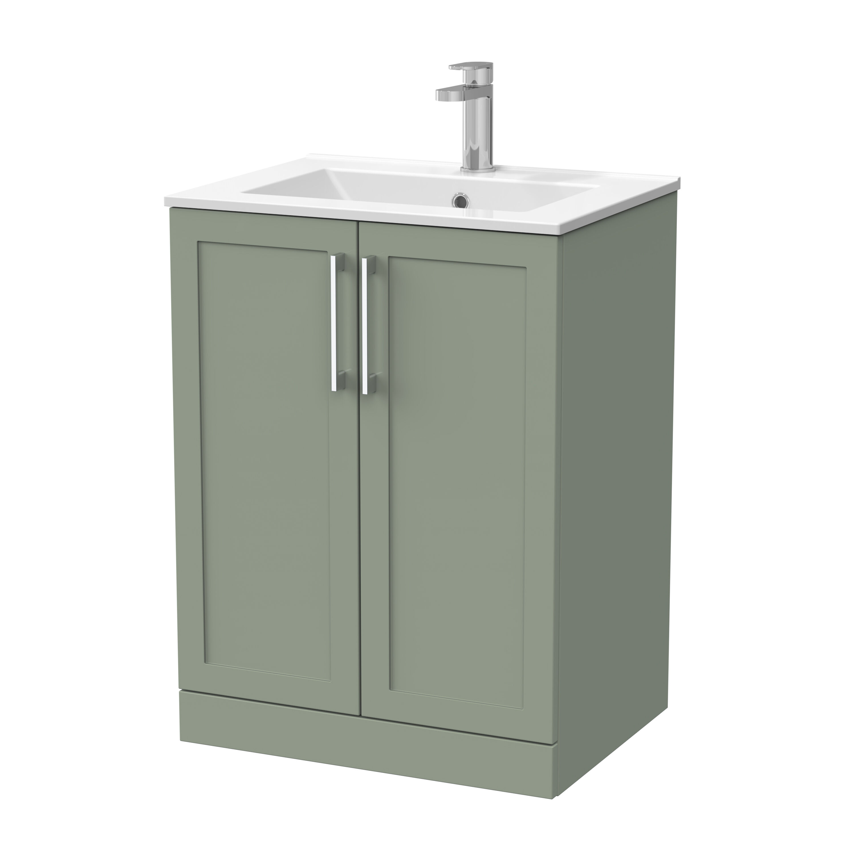 nuie Lux Larck 600mm 2-Door Floor Standing Unit with 1 Tap Hole Minimalist Basin Top - Fern Green