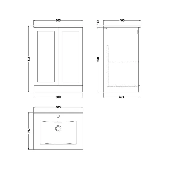Larck 600mm 2-Door Floor Standing Unit with 1 Tap Hole Minimalist Basin Top