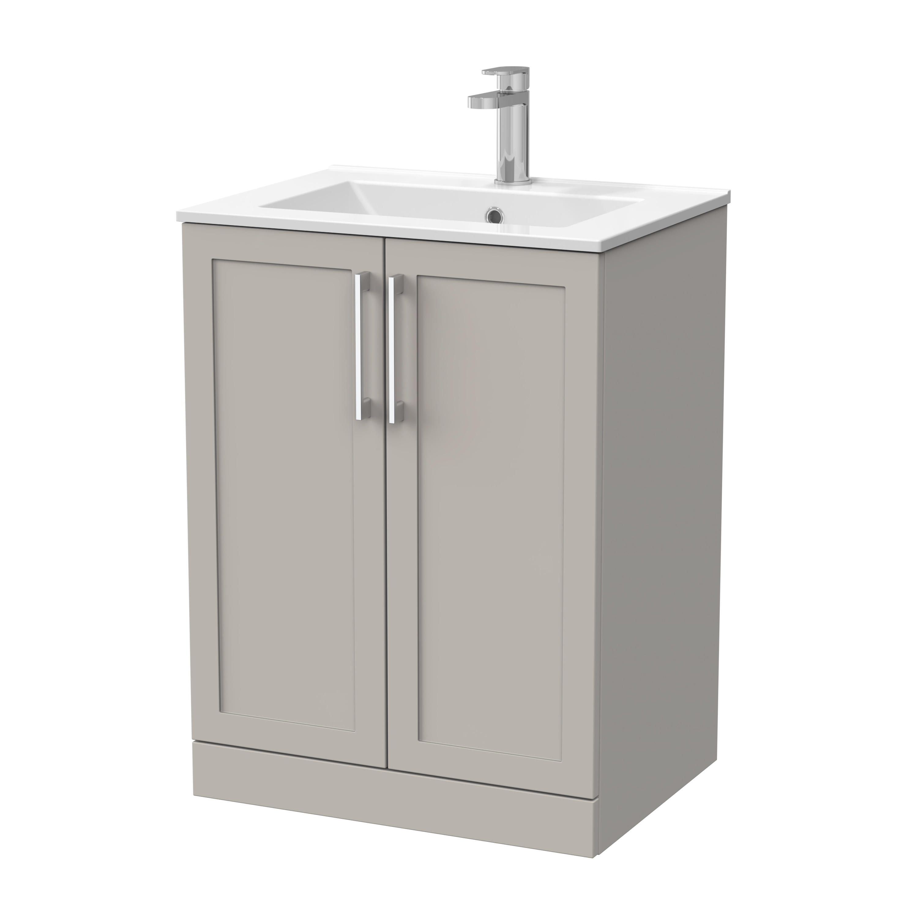 nuie Lux Larck 600mm 2-Door Floor Standing Unit with 1 Tap Hole Minimalist Basin Top - Pebble Grey