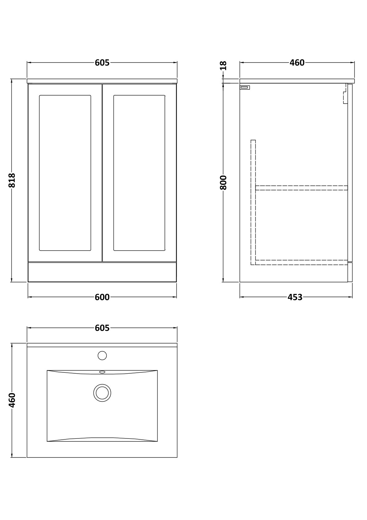 Larck 600mm 2-Door Floor Standing Unit with 1 Tap Hole Minimalist Basin Top