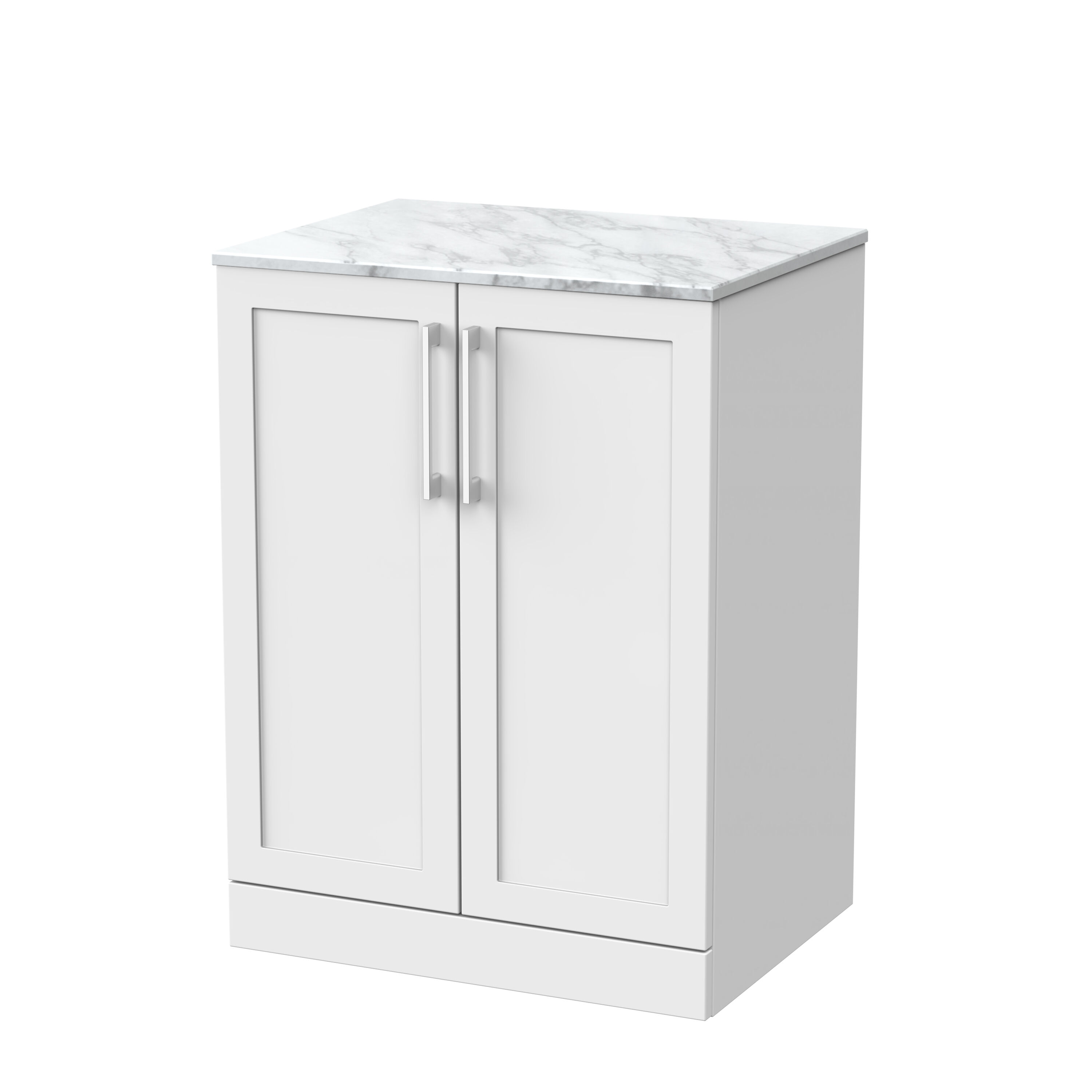 nuie Lux Larck 600mm 2-Door Floor Standing Unit with Carrera Marble Top - Matt White
