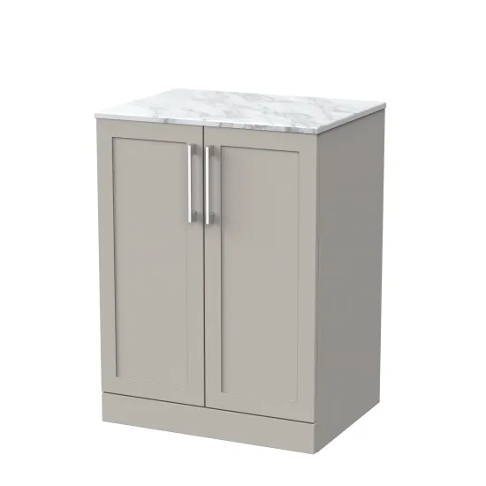 nuie Lux Larck 600mm 2-Door Floor Standing Unit with Carrera Marble Top - Pebble Grey