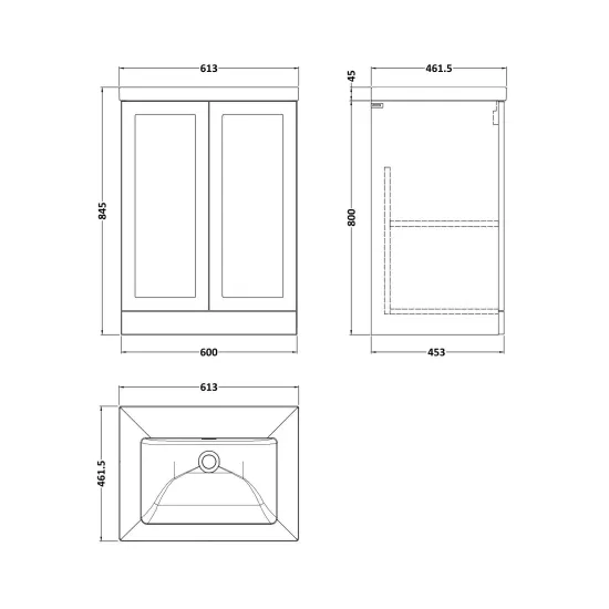 Larck 600mm 2-Door Floor Standing Unit with Contemporary Fireclay Basin - 0 Tap Holes