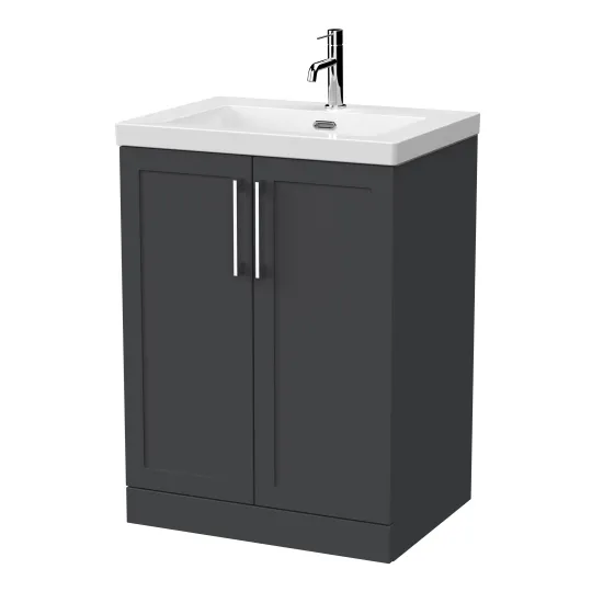 nuie Lux Larck 600mm 2-Door Floor Standing Unit with Contemporary Fireclay Basin - 1 Tap Hole - Soft Black
